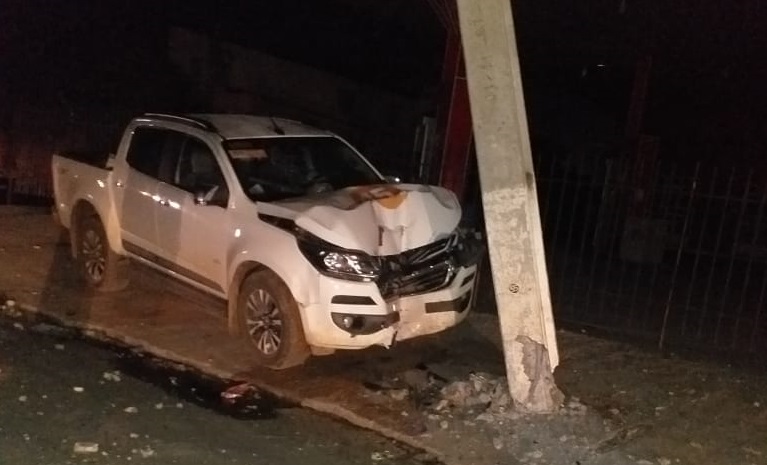 Bom Jesus da Lapa-BA: Caminhonete bate em poste e deixa alguns bairros sem energia