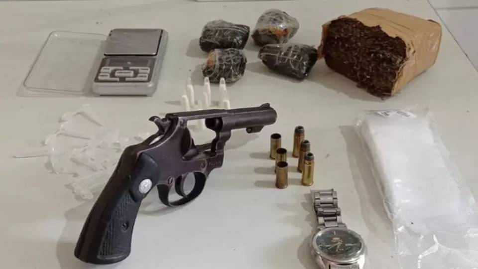 crimes nas duas cidades. A polícia apreendeu um revólver com munições, uma